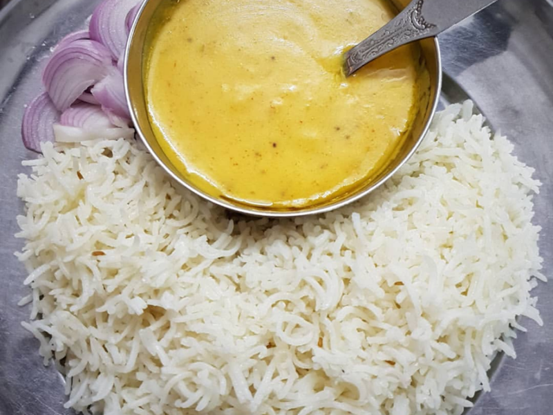 Chickpea Flour blended in Yogurt and Spices Served with Rice
