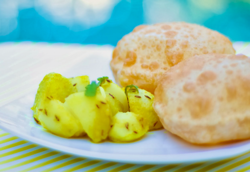 Traditional Favorite Gujarati Dish serve with Two Deep Fried Fluffy Bread