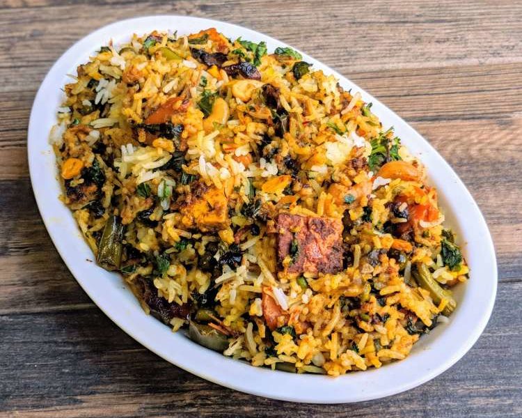 Mix Veggie cooked with Basmati Rice with our special Biryani Masala